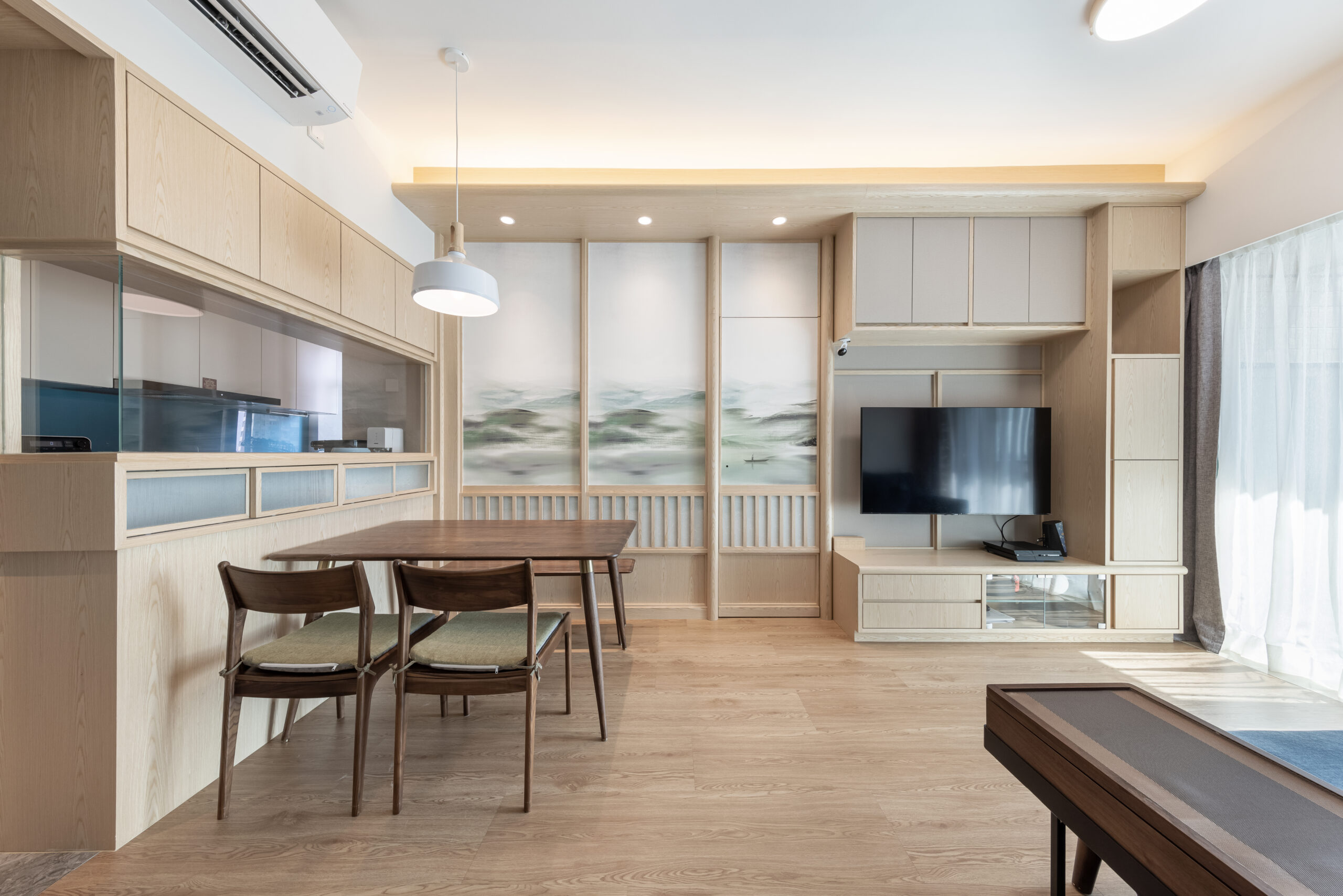 【日系風格設計:彩票联盟厨房橱柜 和風雅居,以自然材質與空間靈活性為主軸,營造出平和典雅的居住空間】