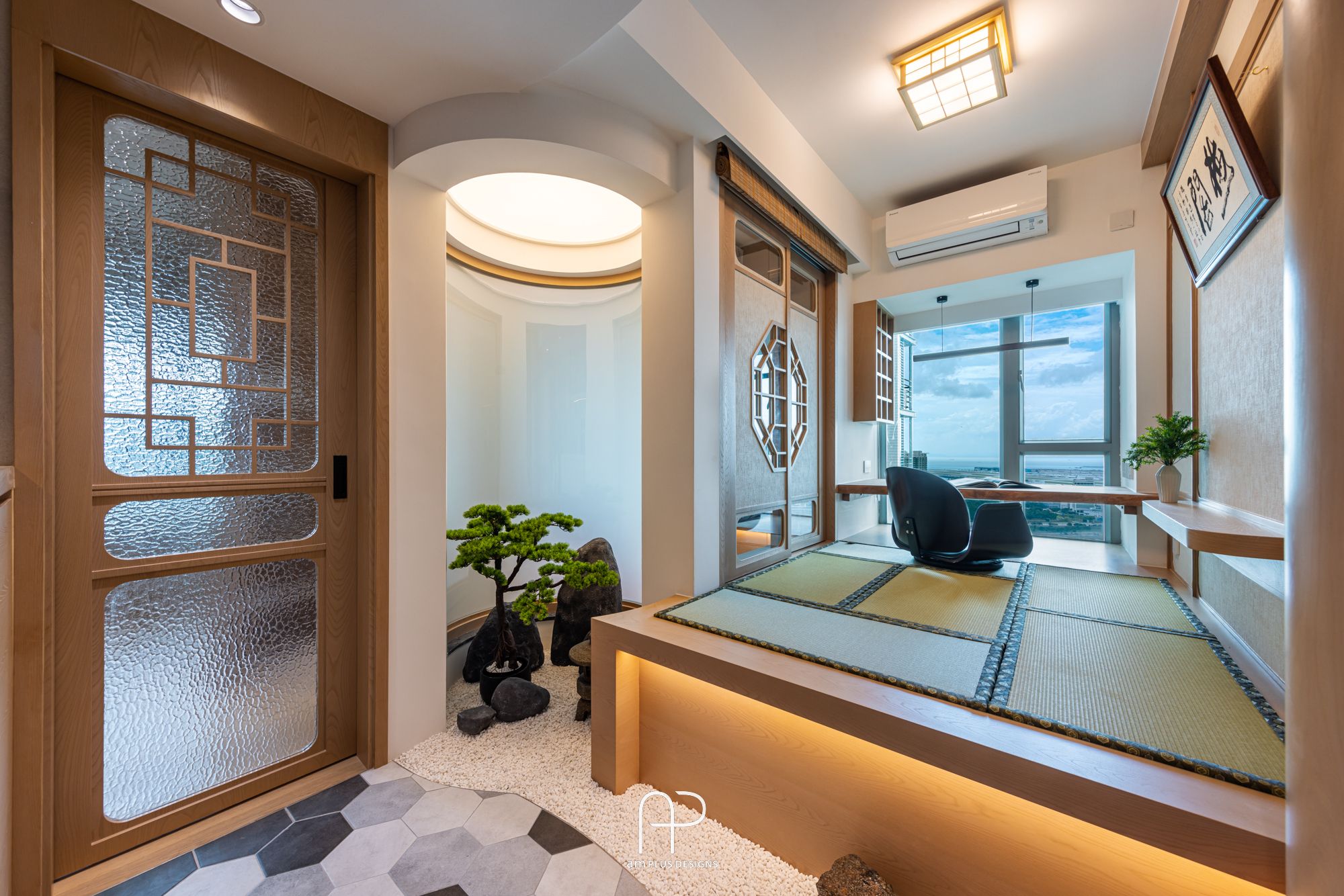 以純正的日式設計風格為核心理念。這個都市居所為戶主一家三口精心設計,旨在為他們於忙碌的都市節奏中,締造一個舒適、寧靜且實用的生活空間。